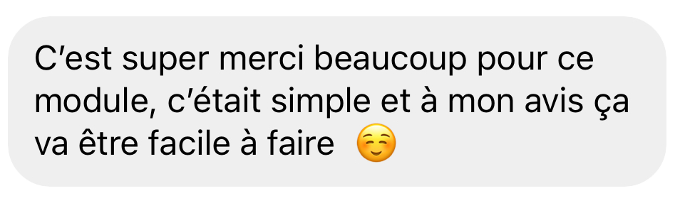 Comme j'ai confiance en mon produit et à la capacité de mes élèves, je permet un remboursement sans justificatif si la formation ne te satisfait pas sous 48h après ta commande.