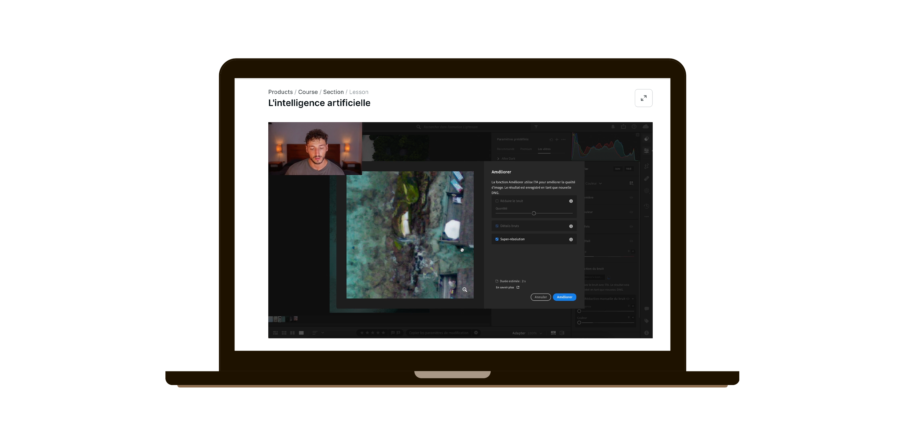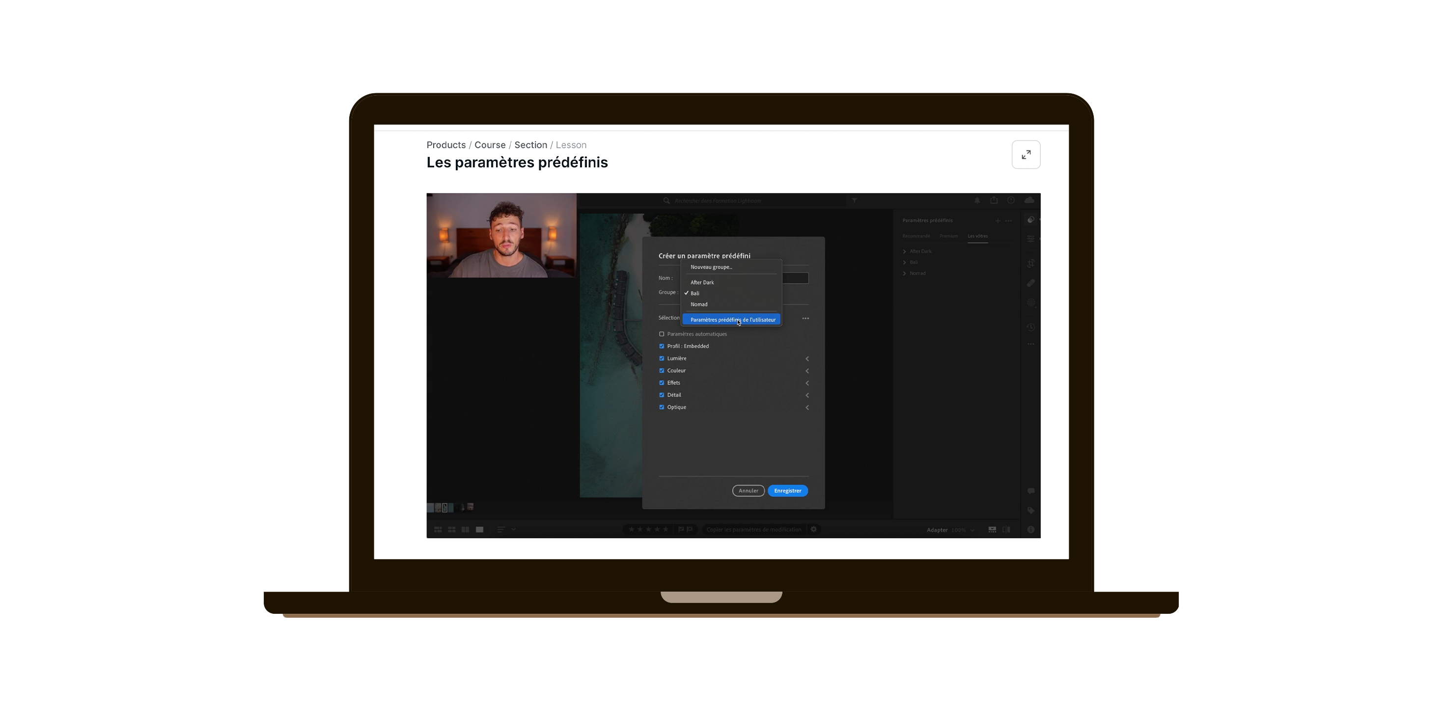Qui commencent par les paramètres de bases de Lightroom jusqu'aux plus poussés en incluant les nouveautés de l'intelligence artificielle.