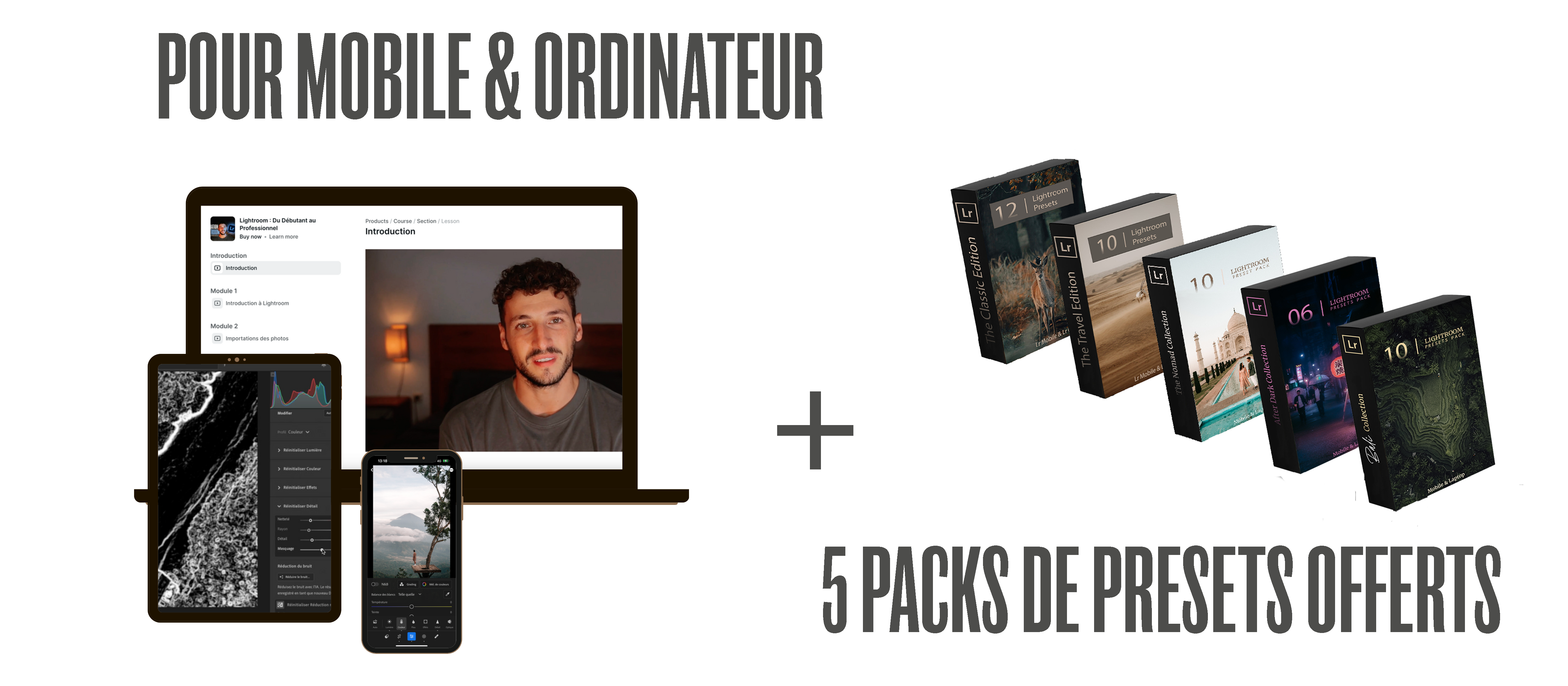 Que tu utilises Lightroom sur ton ordinateur ou ton téléphone, que tu aies la version payante ou gratuite, cette formation t'apprend de A à Z tous les réglages du logiciel.