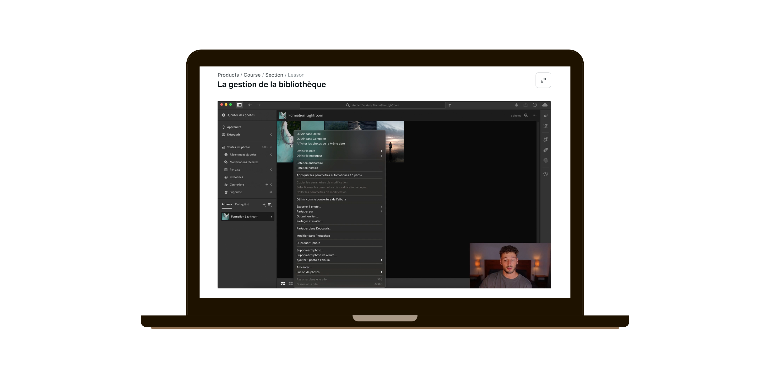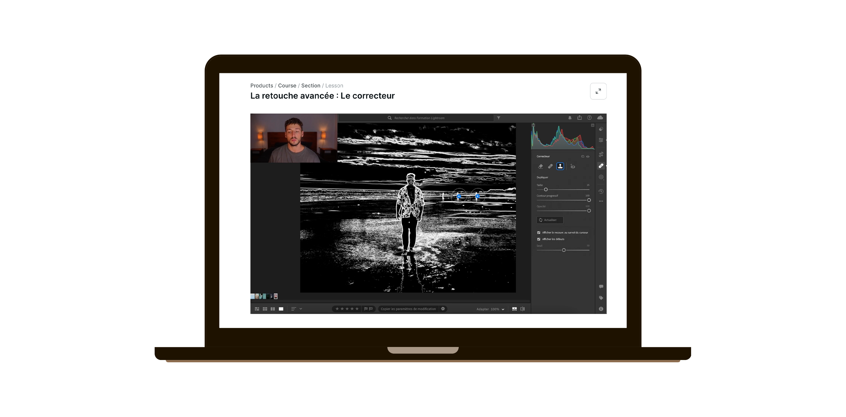 Que tu n'aies jamais touché à Lightroom ou si tu veux devenir un expert de la retouche, cette formation t'accompagnera pas à pas, peu importe ton niveau.
